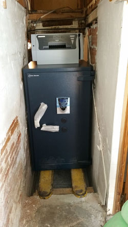![]() Transporte caja fuerte Fichet de 600kg y subida por hueco escalera. | ![]() Retirada caja fuerte de 1.000kg en entidad bancaria. |